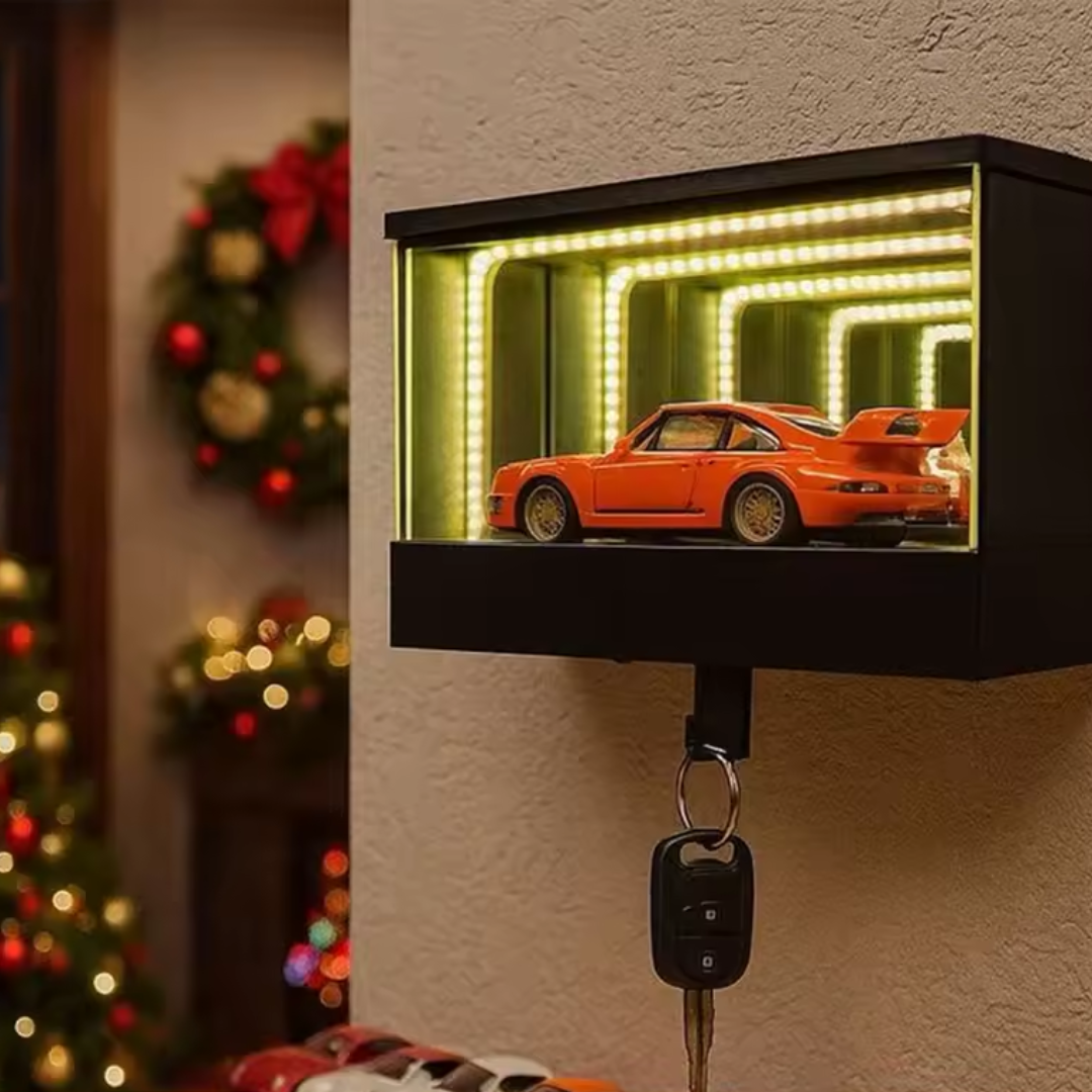 El coche se muestra solo con fines demostrativos — el Garage Key incluye la unidad de exhibición y los accesorios, pero no el vehículo en miniatura.